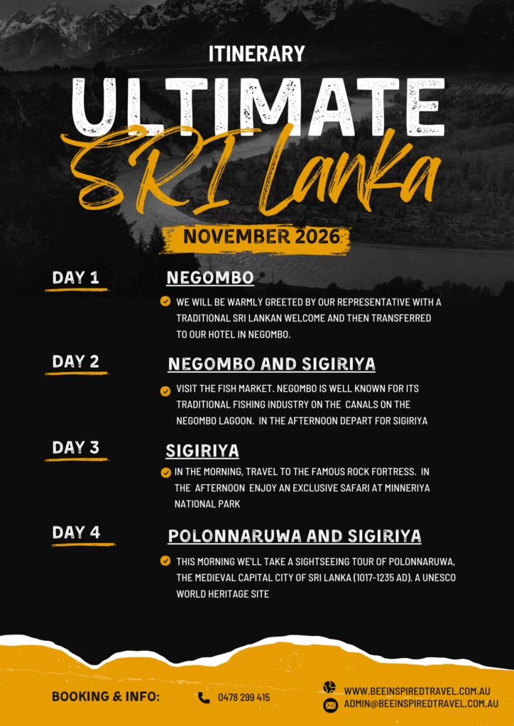 Sri Lanka Premium Small Group Tour – November 2026 – International Flights and ALL meals included.